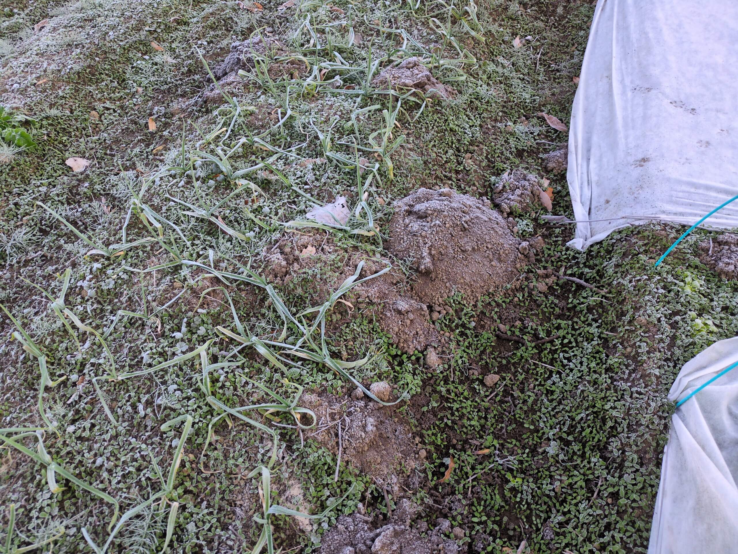 本日の もぐらが結構ボコボコと穴を掘っています。 もぐらは根菜類には、いやそれだけじゃないですが、 ニンニクとかね、ちょっと迷惑なんで、何か対策は考えたいなと思います。以上。