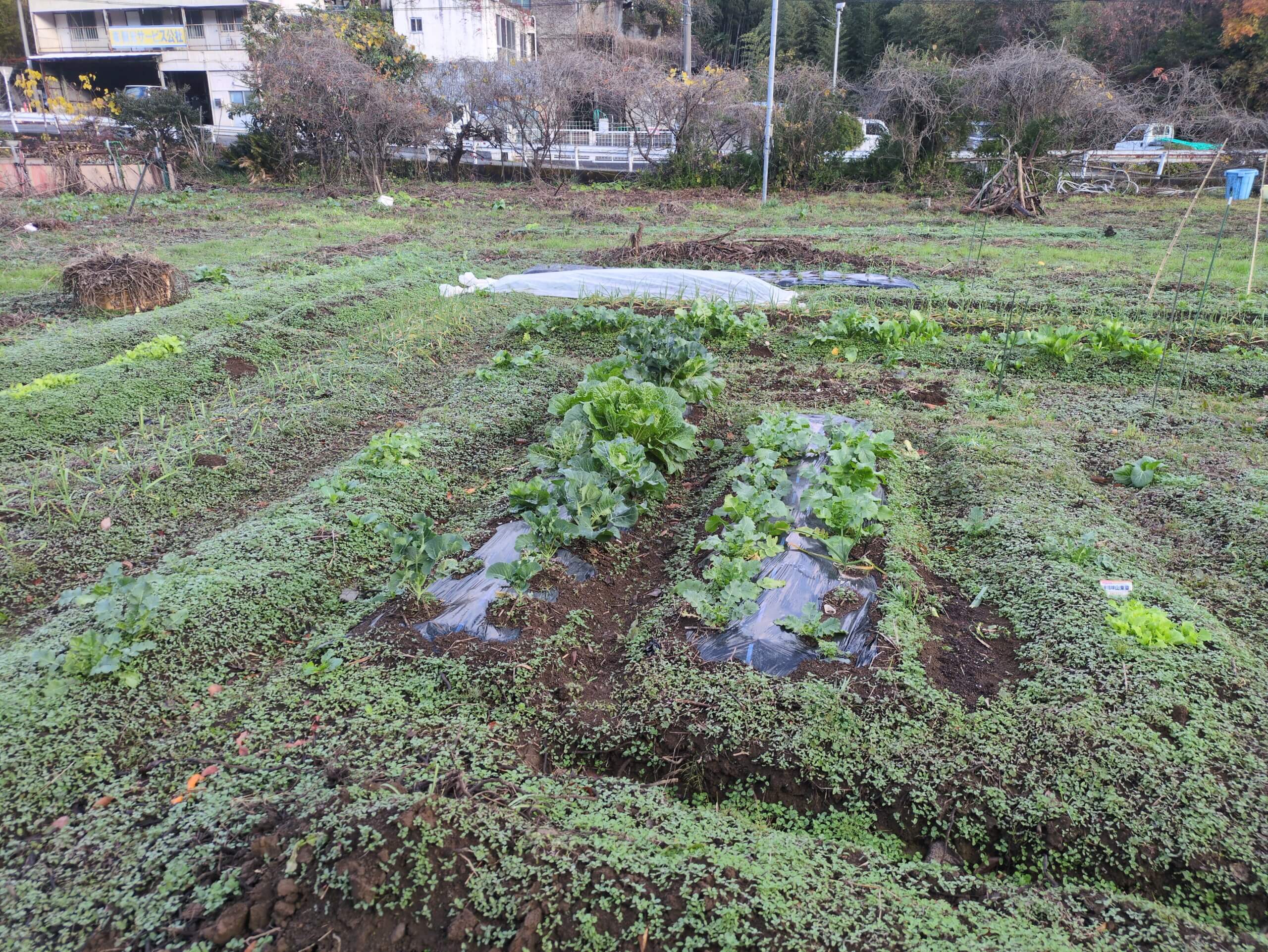 本日の計画 本日は 少々寝坊してしまいましてあまり時間がないので あの あまり迷うことのない畑の 片付け作業を中心にやっていきたいと思います 緑肥がかなり 成長してきて嬉しいです 一方で作物の方は 思ったほど伸びなくて まあまあにんにくなんかはね安心してまだ数ヶ月 ほっとくだけですから 安心してますが大根なんかそろそろ取りたいんですけど 最初に11月頃に植えたやつ まだかという感じですねはい まあいろいろ土壌の環境の確認など諸々含めて進めていきたいと思います以上