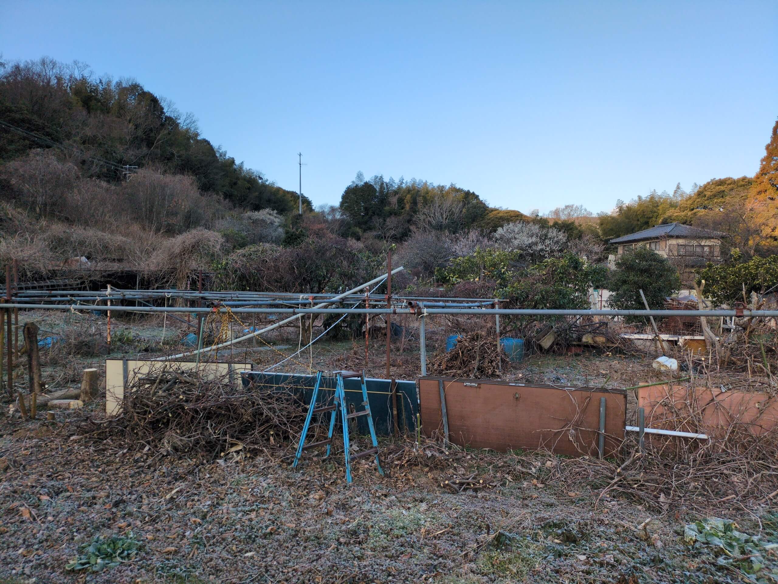 1月31日の記録 土地の荒起こし、それから木の伐採などもしつつ 一番時間がかかったのは結局、水やりですね。 非常に時間がかかって、これだと成り立たないなという感じなので ホースを延長したりとか、ポンプのバッテリーを増やしたりとか 試策をいくつか打っていきたいなと思います。以上。